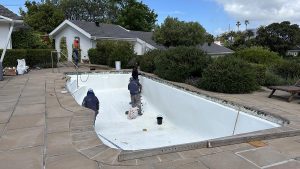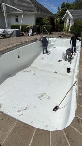 Towards the end of the wet and cold winter, we finally felt like completing our renovation ideas. So we tackled the renovation of the rooms in the extension, followed by the renovation of the two fireplaces (water damage) and the pool. At last, no more tiles are falling off!